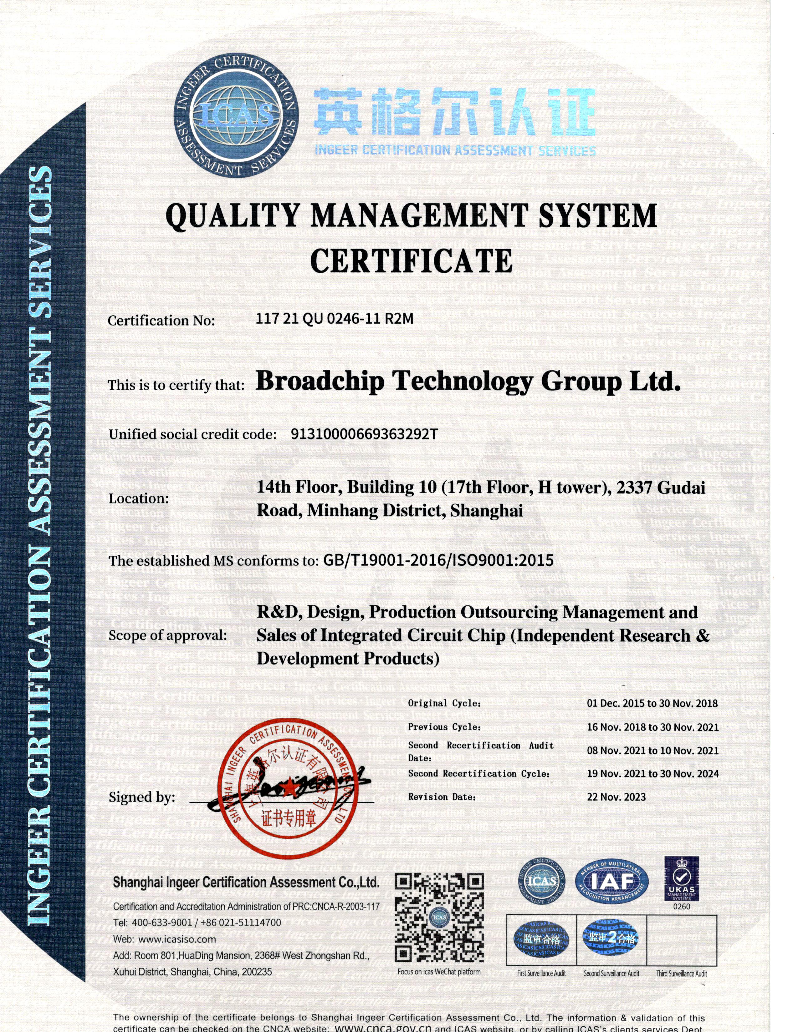 Broadchip Technology Group Co., Ltd. was founded in Shanghai at the end of 2007 by the entrepreneurial team led by Mr. Dai Zhongwei, an overseas high-level talent. The company was recognized as a high-tech enterprise.